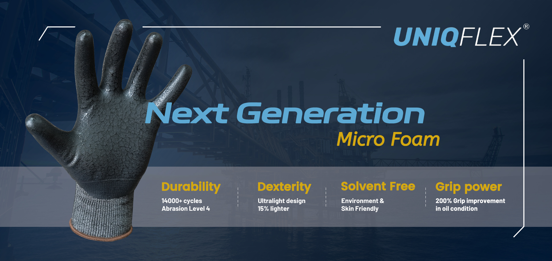 We are dedicated to innovation of new technologies and products, such as NexiFoam®, UNIQFLEX®, ChemGuard®, G-Flex®, GripFoam® etc. All these technologies bring excellent hand protection solutions for users. Based on our mission "Innovation for better protection", we continuously on research and development in new technologies and products, and also take sustainability into account.